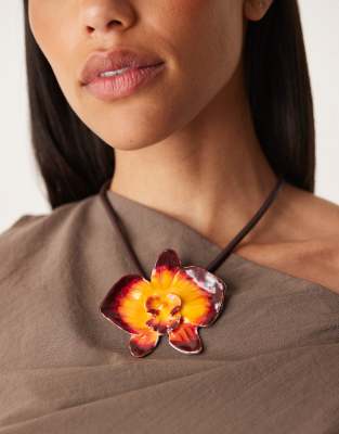 Mango – Halskette in Braun mit Hibiskusblüten-Verzierung