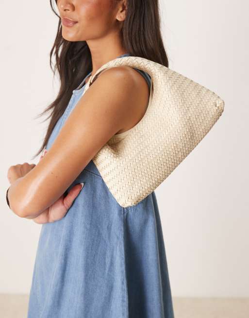 Mango – Handtasche aus Leder in neutralem Farbton mit Webmuster