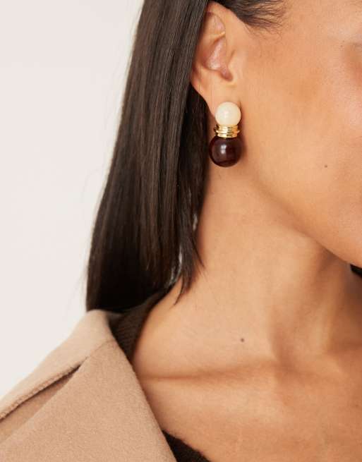 Mango – Hängeohrringe in Braun