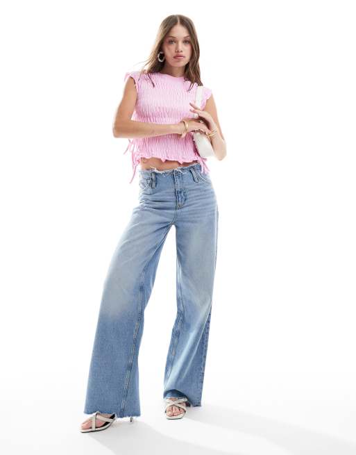 Mango – Hellblaue Jeans mit ungesäumtem Bund, Kombiteil