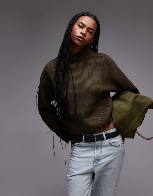 Mango – Hochgeschlossener Pullover aus Grobstrick in Khaki