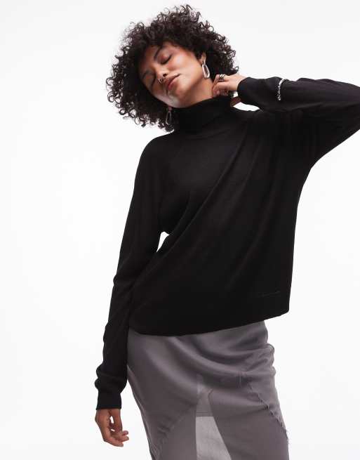 Mango – Hochgeschlossener Pullover in Schwarz
