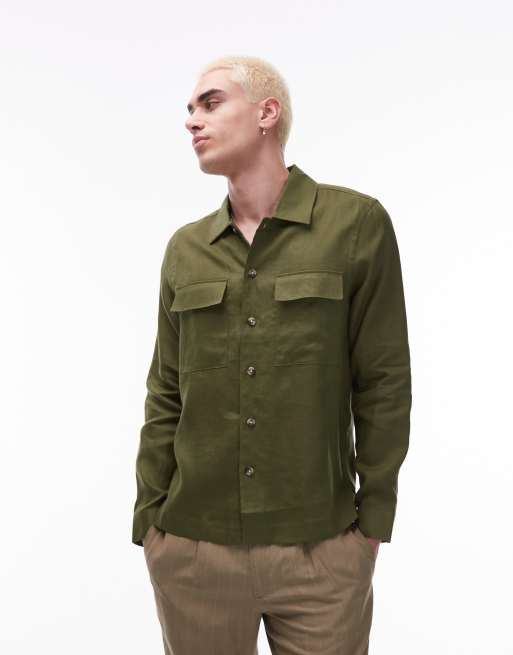 Mango – Hochwertige Hemdjacke aus Leinen in Blassgrün
