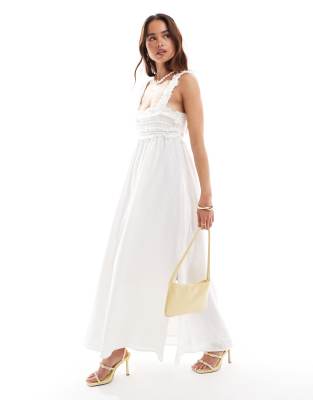 Mango – Hochwertiges Midikleid in Weiß mit Stickerei