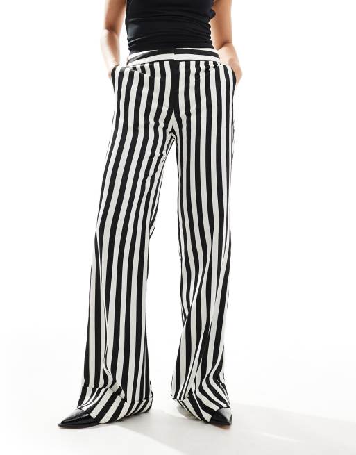 Mango – Hose in Schwarz und Weiß gestreift mit geradem Bein