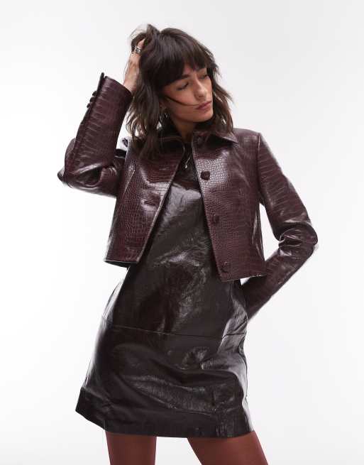 Mango – Jacke aus Kunstleder in Kroko-Burgunderrot, Kombiteil