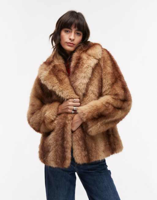 Mango – Jacke in Braun aus gemischtem Kunstpelz