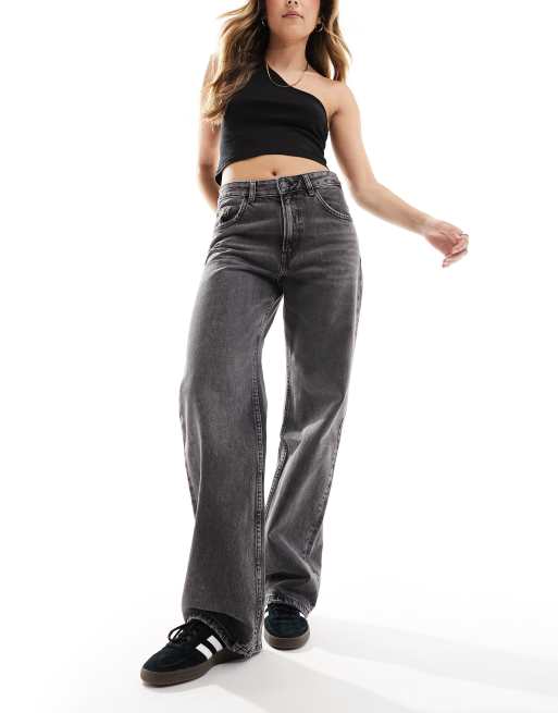 Mango – Jeans in verwaschenem Schwarz mit mittelhohem Bund und geradem Schnitt