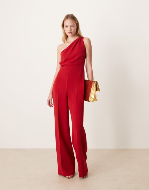 Mango – Jumpsuit in Rot mit One-Shoulder-Träger