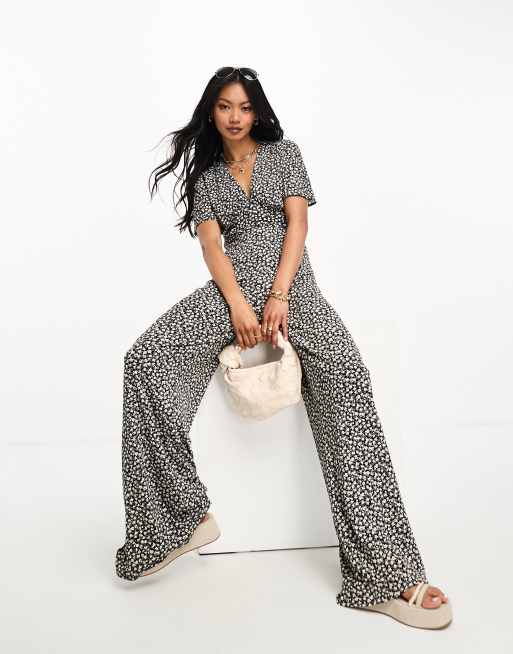 Mango – Jumpsuit in Schwarz mit Blumendruck