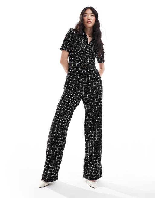 Mango – Karierter Tweed-Jumpsuit in Schwarz