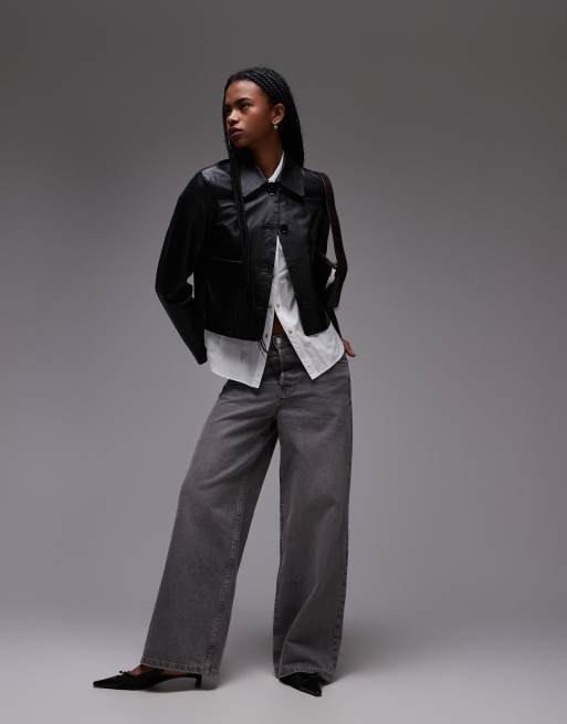 Mango – Kastige Lederjacke in Schwarz