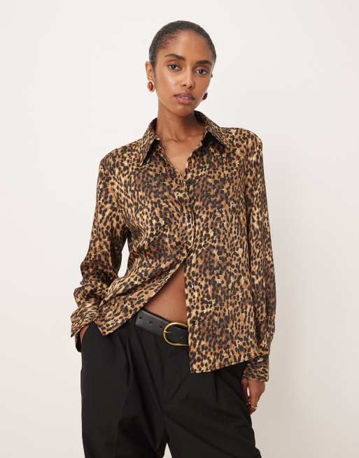 Mango – Klassisches Hemd in Dunkelbraun mit Leopardenmuster