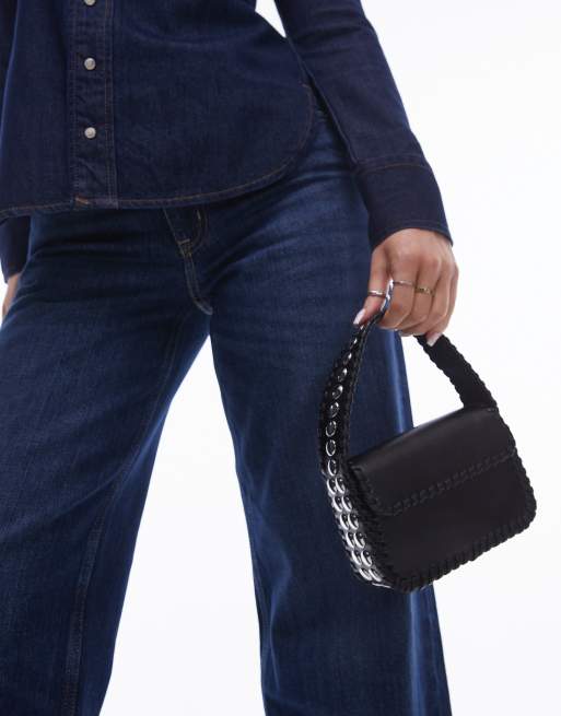 Mango – Kleine Handtasche in Schwarz mit Nietenverzierung am Henkel