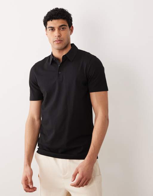 Mango – Kurzärmliges Polo-Oberteil aus Jersey in Schwarz mit Knopfleiste