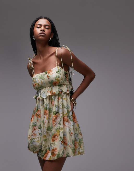 Mango – Kurzes Babydoll-Kleid aus Chiffon mit zartem Blumenmuster