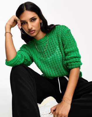 Mango – Langärmliger Strickpullover in Grün mit Zopfmuster und kurzem Schnitt