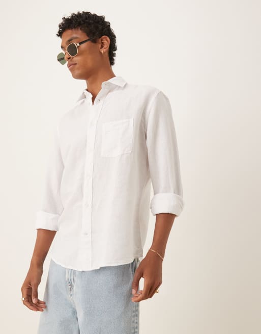 Mango – Langärmliges Hemd aus Leinenmix in Weiß