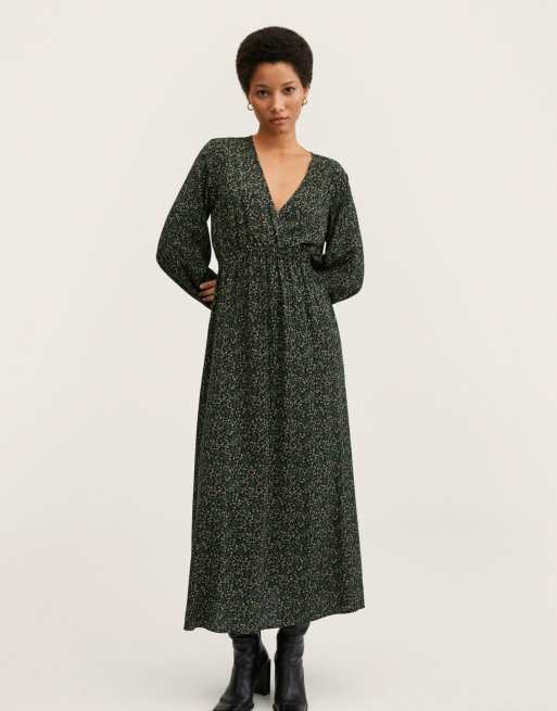 Mango – Langärmliges Kleid in Grün mit Blumenmuster