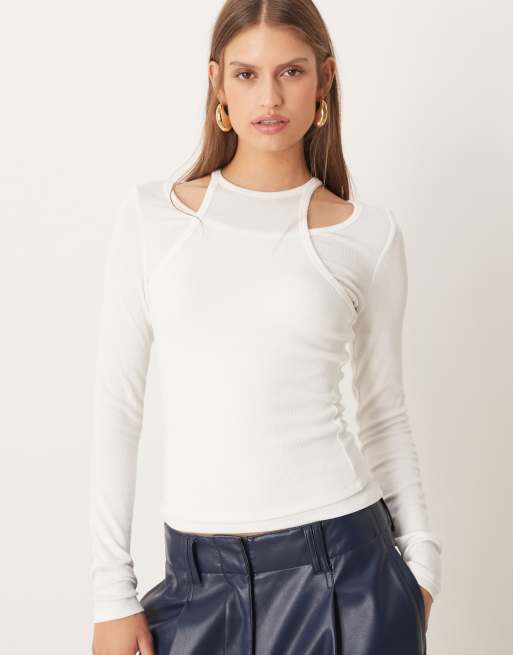Mango – Langärmliges Oberteil in Weiß mit Overlay-Detail
