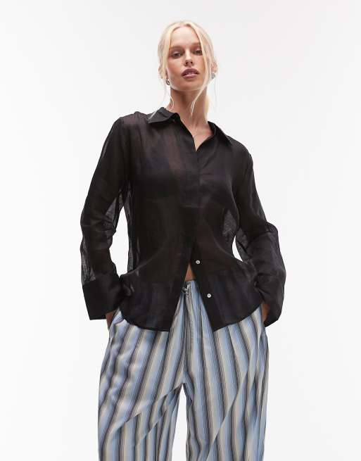 Mango – Leichte Hemdbluse aus Ramie in Schwarz
