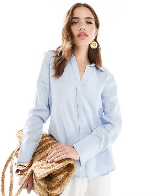 Mango – Leinen-Hemdbluse in Hellblau