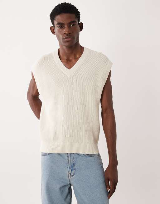 Mango – Locker geschnittener Strickpullunder in Ecru mit Waffelstruktur