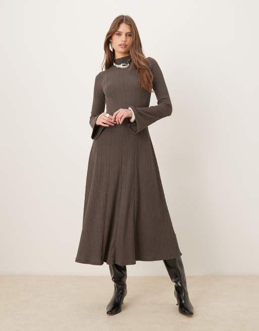 Mango – Maxikleid in Grau mit ausgestellten Ärmeln
