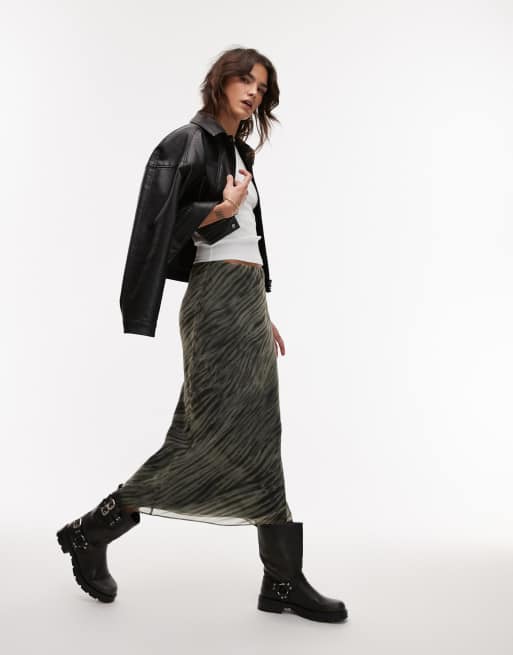 Mango – Maxirock in Grün mit Zebraprint