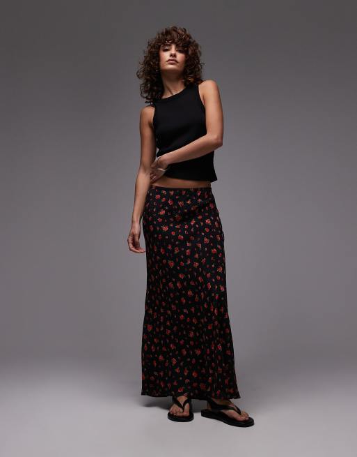 Mango – Maxirock in Schwarz mit Blumenprint