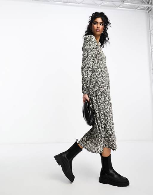 Mango – Midikleid mit Blumenmuster in Schwarz
