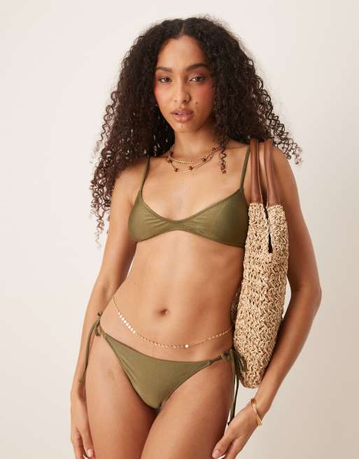 Mango – Mikro-Bikini-Oberteil in Olivgrün