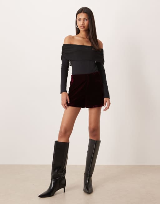 Mango – Mikro-Shorts aus Samt in Burgunderrot