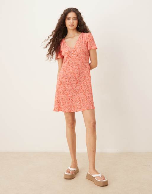 Mango – Mini-Freizeitkleid mit rotem Blumenmuster und V-Ausschnitt