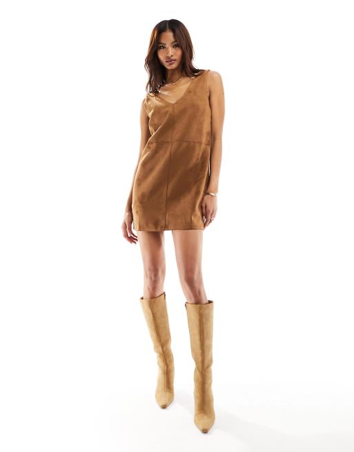 Mango – Minikleid aus Wildleder in Hellbraun