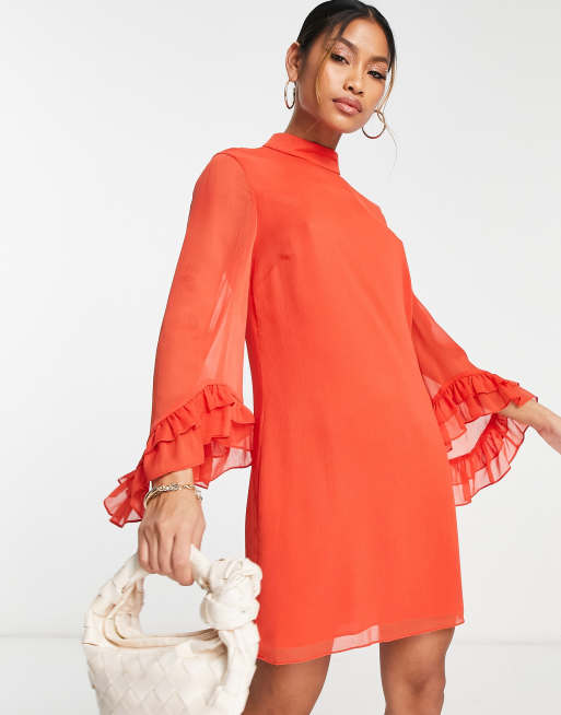 Mango – Minikleid mit Rüschenärmeln in Orange