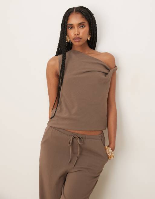 Mango – Oberteil aus Polyamid in Mokkabraun mit verdrehtem Detail, Kombiteil