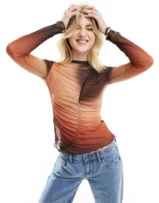 Mango – Oberteil in Braun mit Netzstoff-Detail
