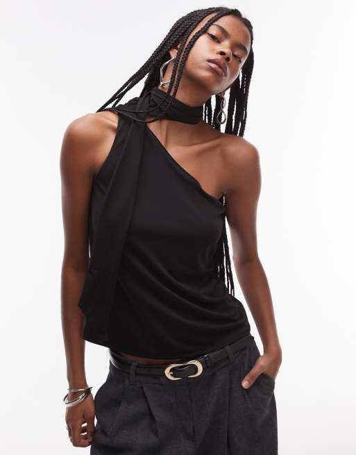 Mango – Oberteil in Schwarz mit Wickelkragen