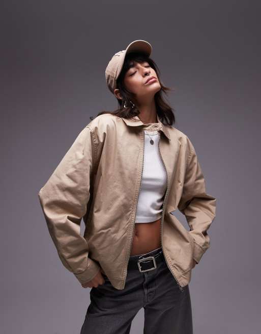 Mango – Oversize-Jacke in Beige mit Reißverschluss
