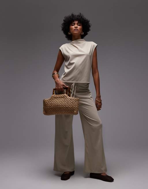 Mango – Polyamid-Hose in Beige mit Kordelzugbund und weitem Bein, Kombiteil