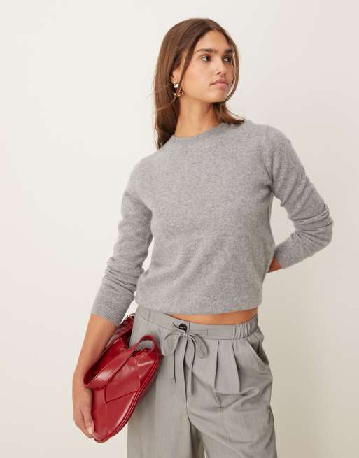 Mango – Pullover aus Kaschmir in Grau mit Rundhalsausschnitt
