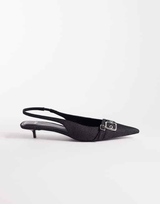 Mango – Pumps in Denim-Waschung mit Kitten-Heel-Absatz und Schnallendetail