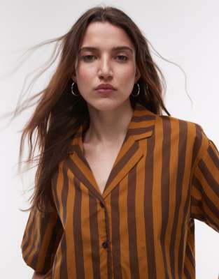Mango – Pyjama-Hemd aus Baumwolle mit farblich abgestimmtem braunem Streifenmuster, Kombiteil