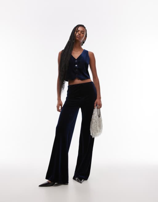 Mango – Samthose in Marineblau mit weitem Bein, Kombiteil