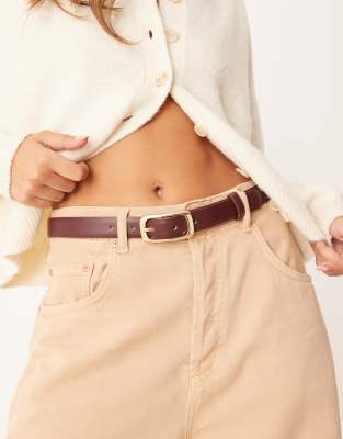 Mango – Schmaler Gürtel in Dunkelrot mit rechteckiger, goldfarbener Schnalle
