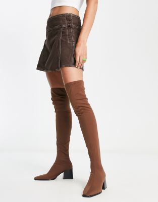 Mango – Schmaler kniehoher Stiefel in Braun