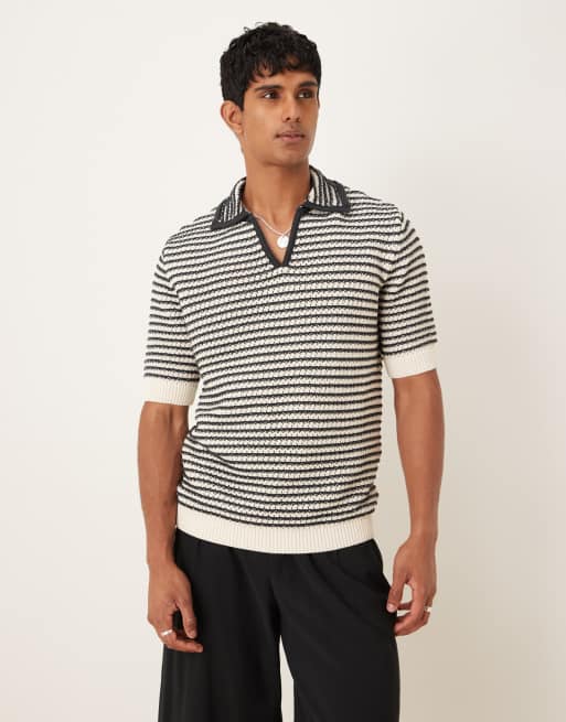 Mango – Schwarz-weiß gestreiftes Polohemd aus Strickstoff