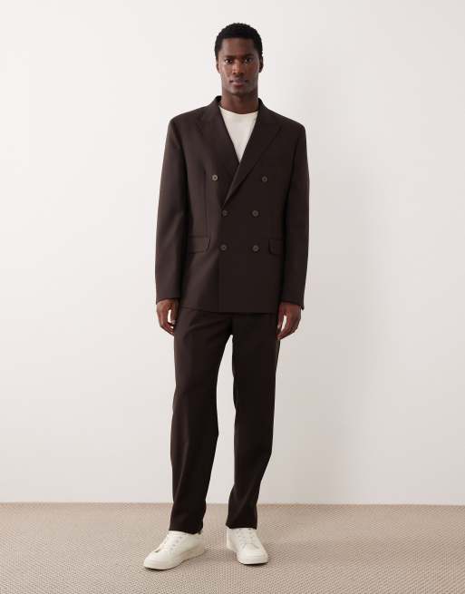 Mango – Siena – Anzug aus 100% Wolle in Dunkelbraun mit zweireihigem Blazer und eleganter Hose