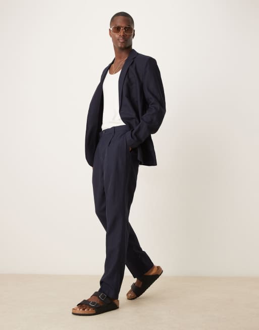 Mango – Slim Fit Leinenmix-Hose in Marineblau, Kombiteil